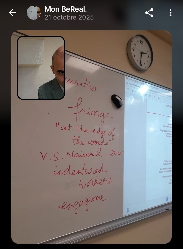 Aujourd’hui, j’ai pu, en croisant avec “Ixora” de Jacqueline Bishop, évoquer, trop rapidement – mais les étudiantes n’en avaient jamais entendu parler – l’engagisme, les indentured workers. C’est normal que personne n’en ait entendu parler : toute cette histoire est très largement silenciée. Or, dans le roman de Davina Ittoo, Misère, que je viens de commencer, la trace en est là, encore et toujours, profonde, omniprésente.
